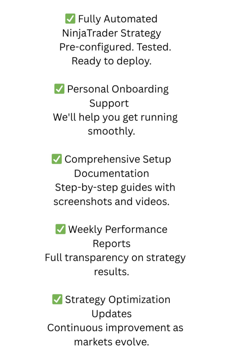 A: We recommend minimum $5,000 to trade MNQ futures comfortably with proper risk management. The strategy adjusts position sizing to your account size.Q: Is this really "set and forget"?