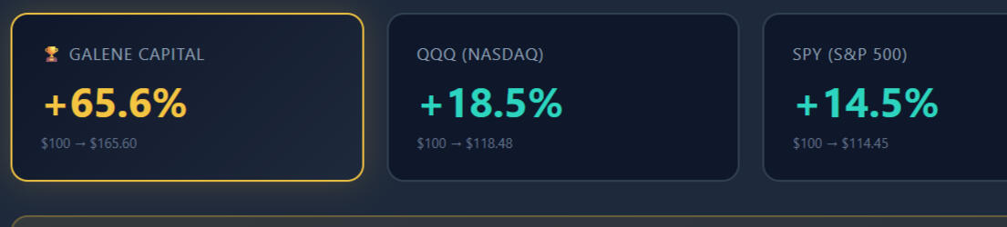 Everyone started at $100 on January 2nd, 2025.By October 7th:π Galene Capital: $165.60 (+65.6%)