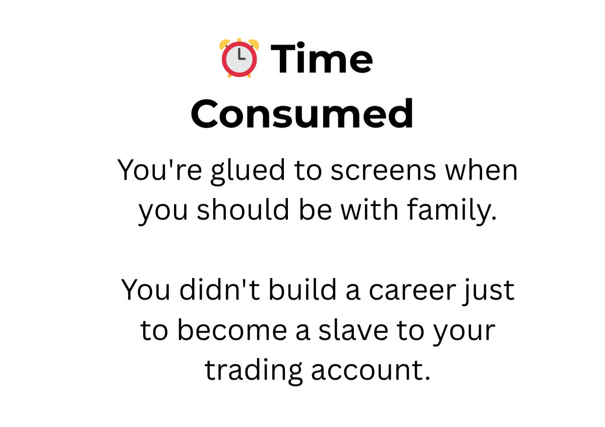 You're building a business. You can't afford to babysit trades.Every minute spent analyzing charts is a minute stolen