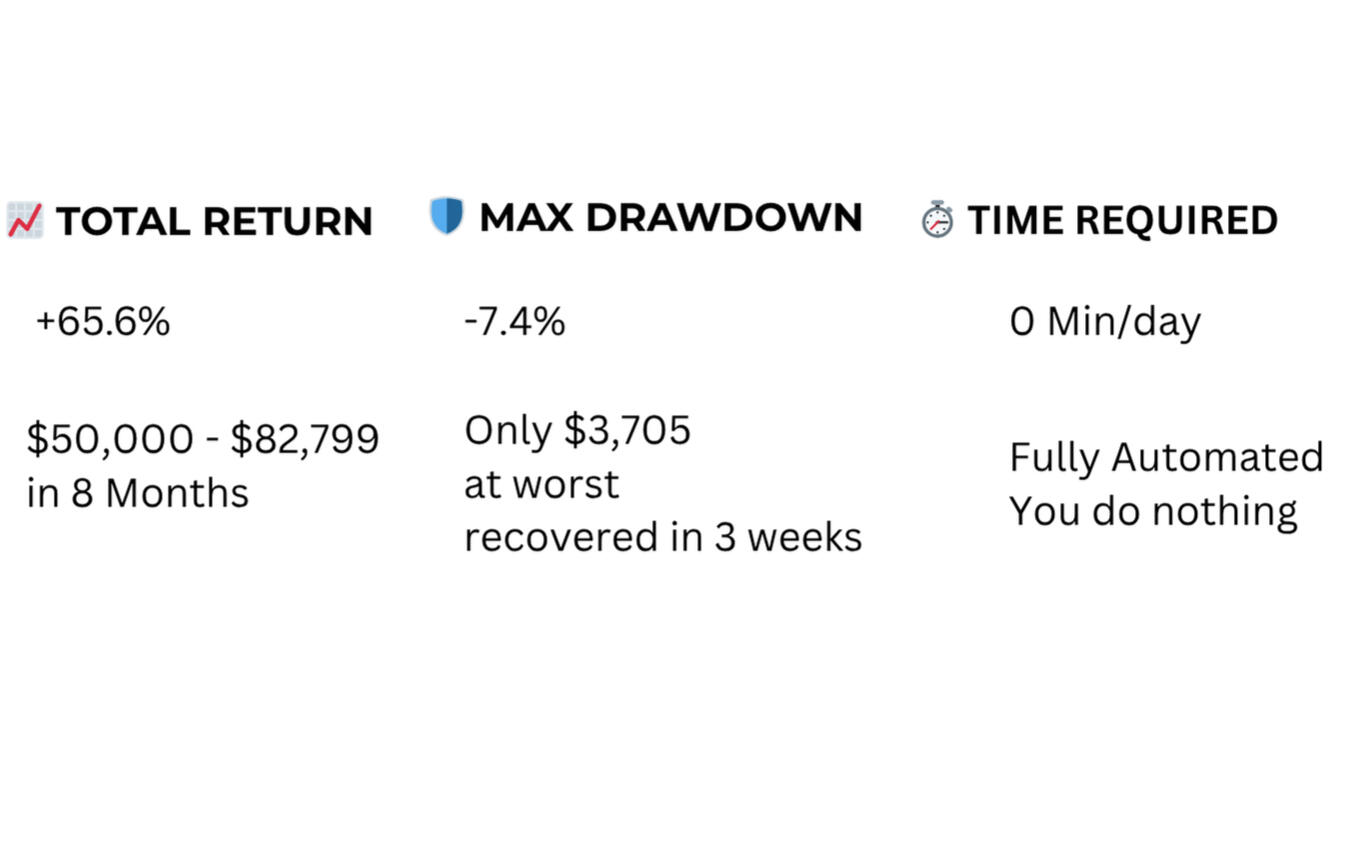 returns while you focus on what matters.65.6% returns β’ 7.4% max drawdown β’ 0 minutes dailyJoin busy professionals building wealth on autopilot.